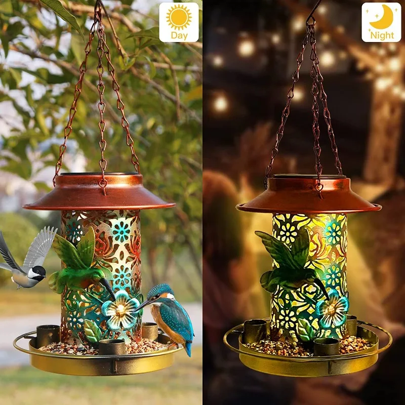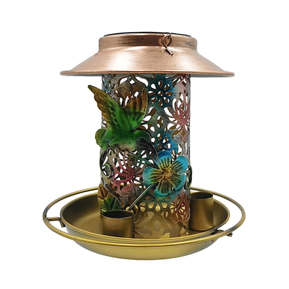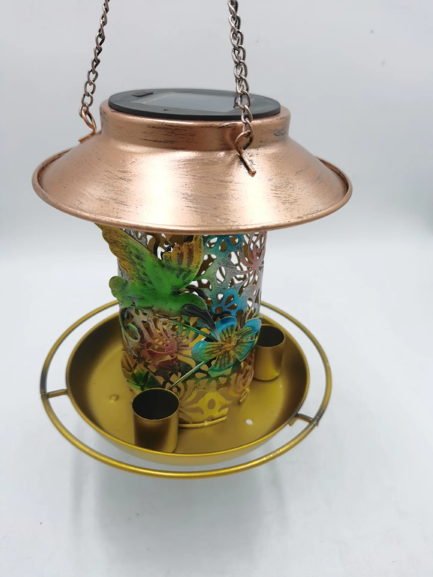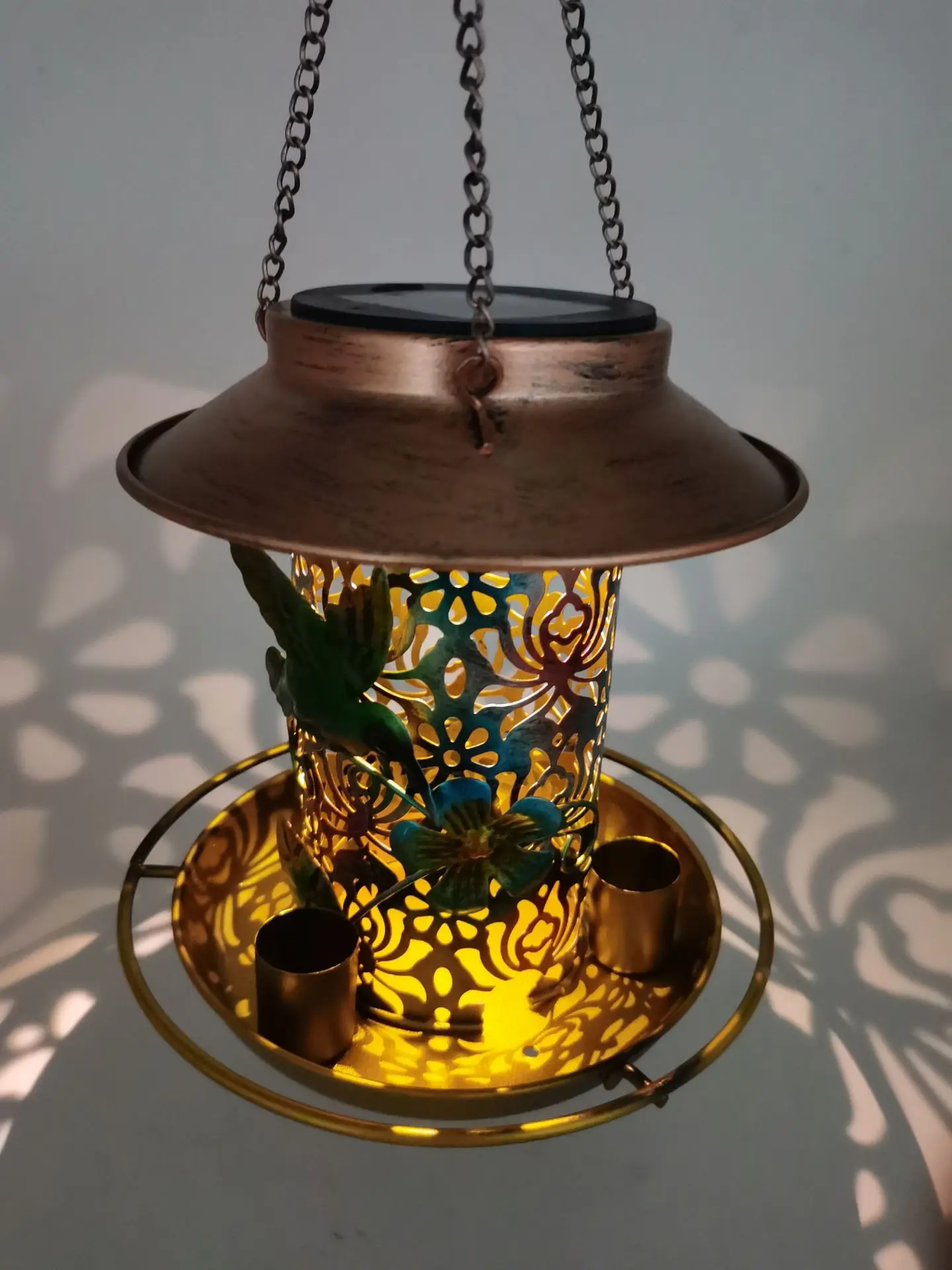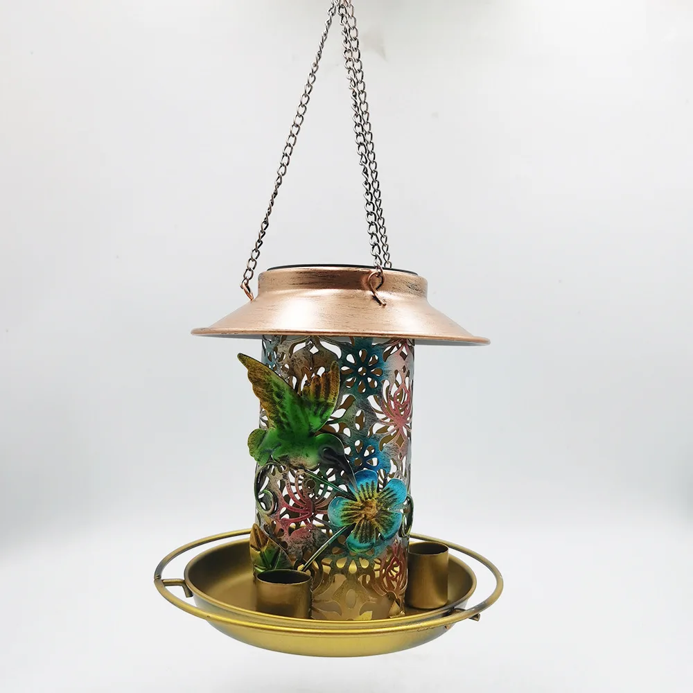 1pcs New Solar Iron Bird Feeder LED Solar Courtyard Decoration Projection Feeding Bird Water Dispenser Light