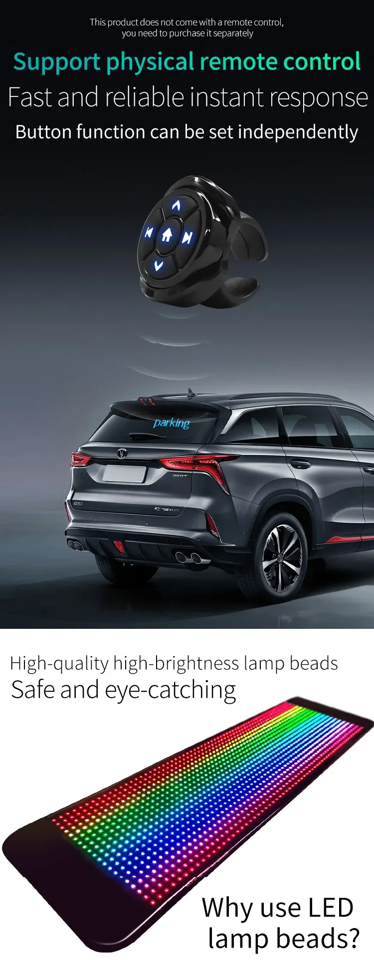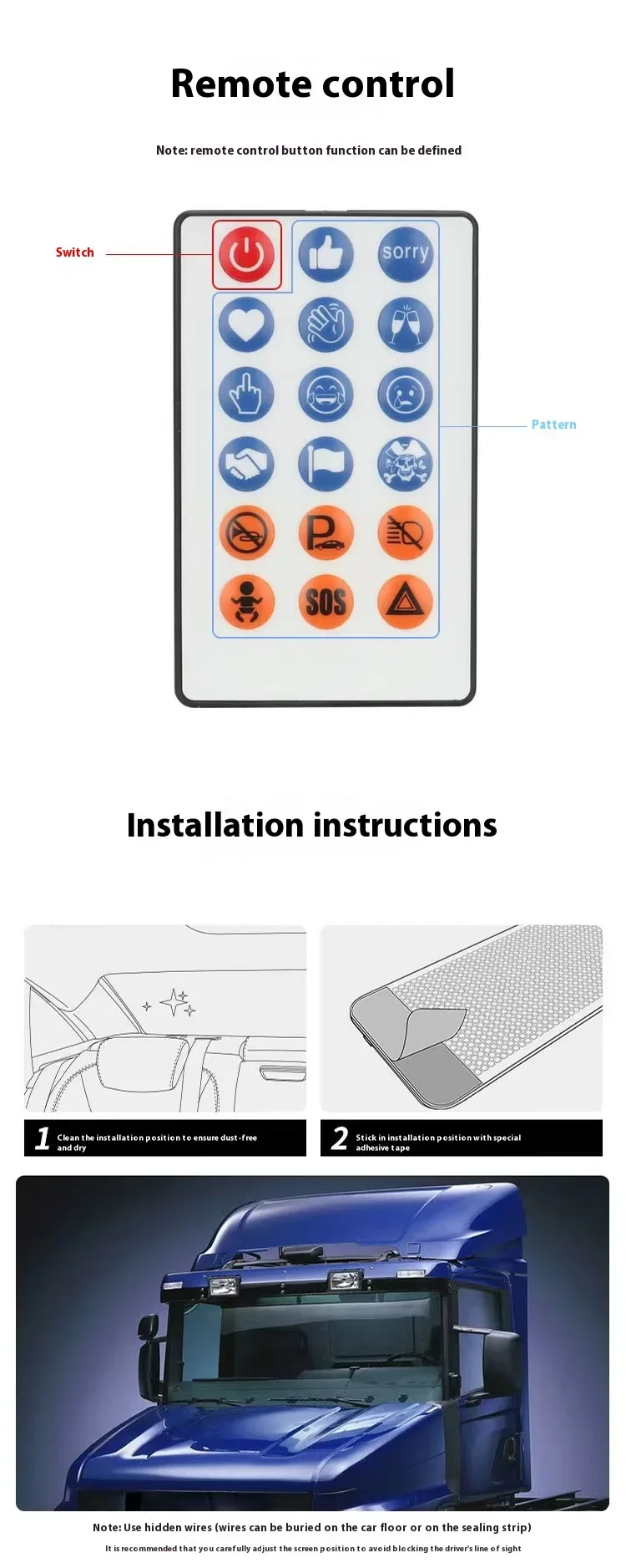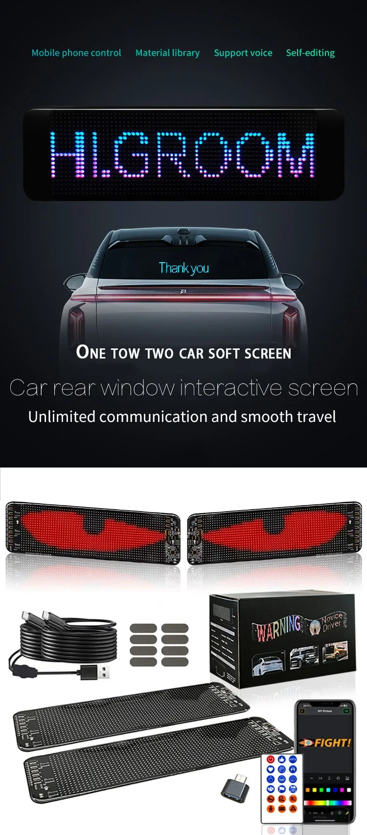 【High-quality and High Brightness】This programmable LED sign for car windshield is a 16 X 32 pixel full-color LED display. The high-quality LED car sign can not only emit high-intensity light, but also has low power consumption, and the full-color effect is brighter and soft without glare.